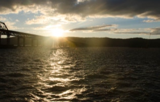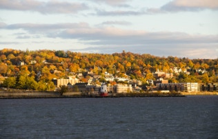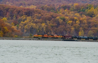 Visited in the fall of 2013, pictured are shots along the Hudson River during fall foliage. Heading north starting with a cloudy morning that revealed a beautiful day ending with a sparkling sundown. The Hudson River is a 315-mile river that flows from north to south primarily through eastern New York in the United States. The river originates in the Adirondack Mountains of Upstate New York, flows southward through the Hudson Valley to the Upper New York Bay between New York City and Jersey City